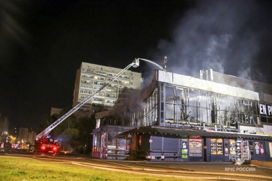 Кроме того, огонь повредил припаркованные рядом с торговым центром автомобили. В МЧС сообщили, что пожар был ликвидирован к 05:45 мск. Точные причины случившегося установят дознаватели. По некоторым данным, причиной возгорания мог стать поджог.