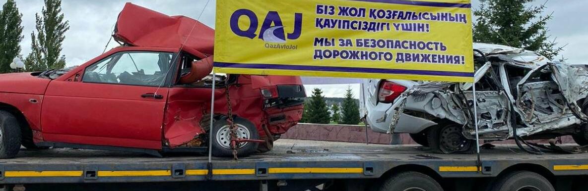 Для наглядности организаторы показали водителям машины, разбитые в ДТП на дорогах республиканского значения.