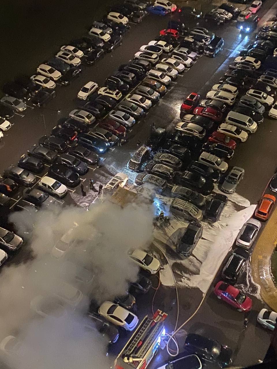 8 машин и 2 мотоцикла сгорели из-за возгорания мусорных контейнеров. Жильцы одного из домов в Марьино подозревают, что баки подожгли специально, так как камеры зафиксировали неизвестного мужчину, бродившего по округе.