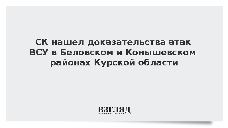 Российские следователи выявили доказательства прицельных атак украинских военных по жилому массиву Беловского и Конышевского районов Курской области, сообщил Следственный комитет России.