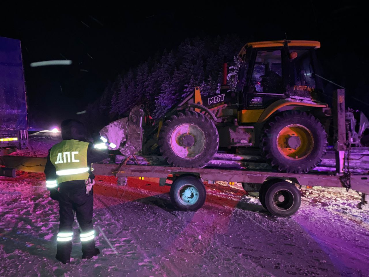 Водитель КАМАЗа рассказал инспекторам, что вез трактор из Ирбита на стройку в Красноуральск, неожиданно прицеп стало заносить, он попытался его выровнять, но избежать столкновения не удалось. Освидетельствование показало, что он трезв. Сам он из из Курганской области, за рулем уже 22 года. За нарушение привлекался один раз.