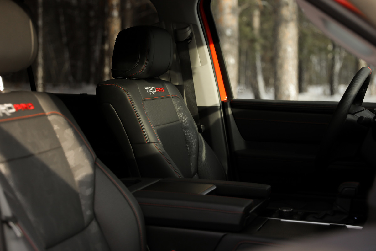 По сравнению с Sequoia TRD Pro дорожный просвет увеличен с 231 до 256 мм. Угол въезда варианта AT37 – 26 градусов, съезда – 30 градусов. Длина и колесная база не изменились (5286 и 3099 мм соответственно), ширина новой версии составляет 2310 мм (показатель конвейерной Sequoia TRD Pro – 2027 мм), высота – 2040 мм (+66 мм).
