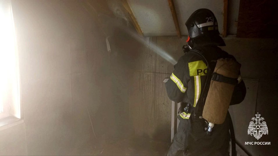 В деревне Клешня под Алексином загорелся частный жилой дом на двух хозяев. На месте происшествия работали 11 спасателей и 4 единицы техники.