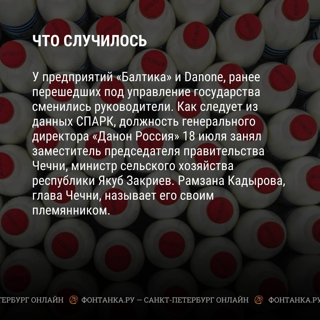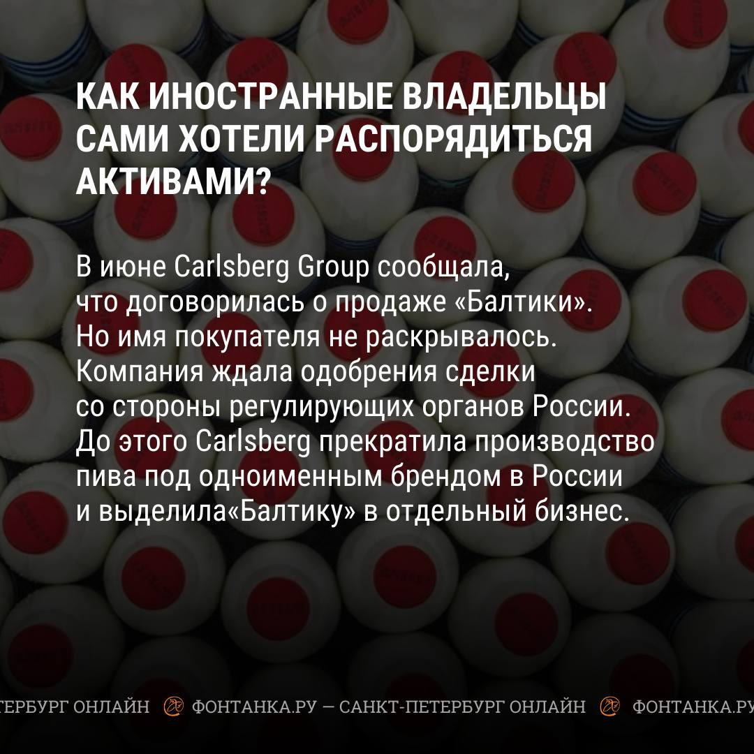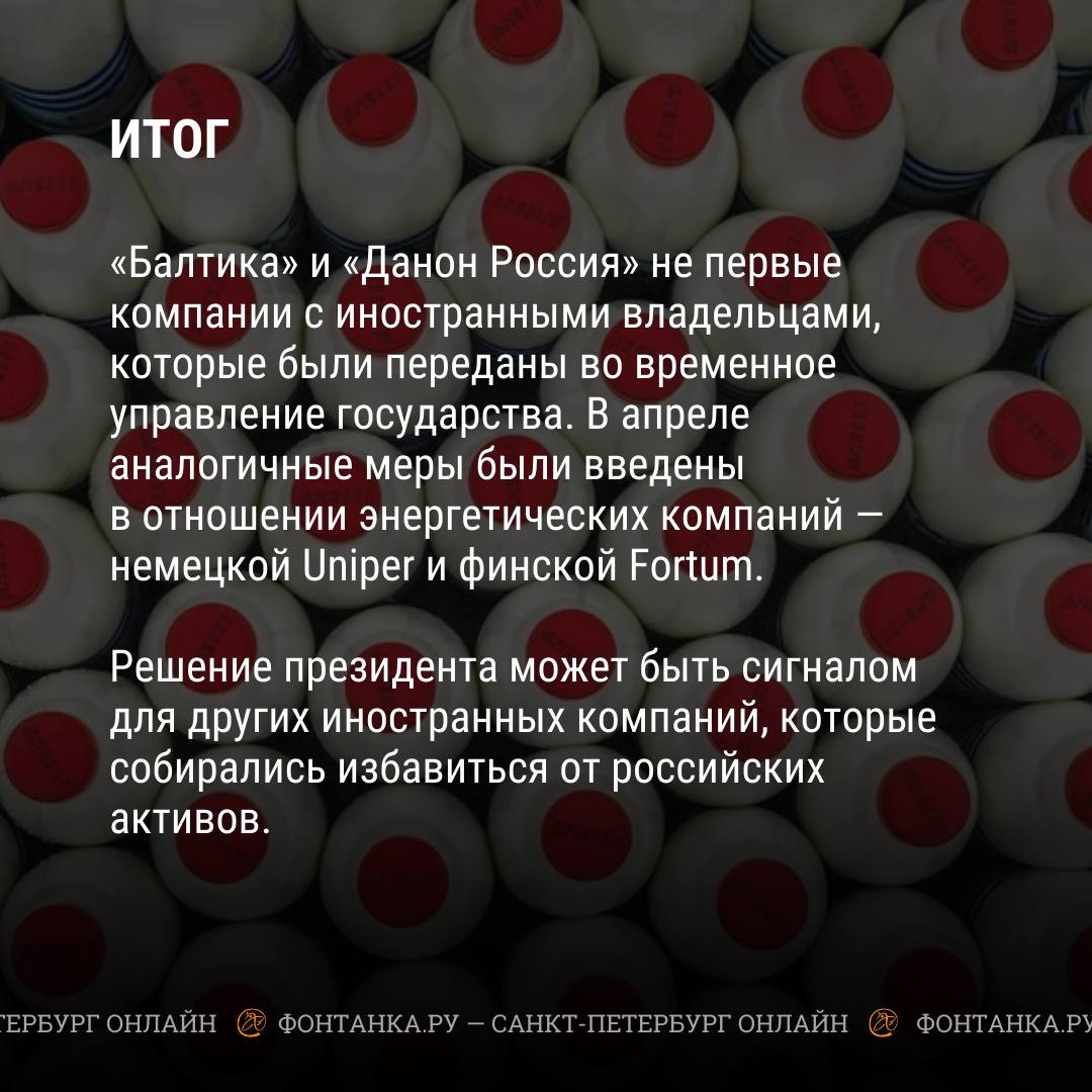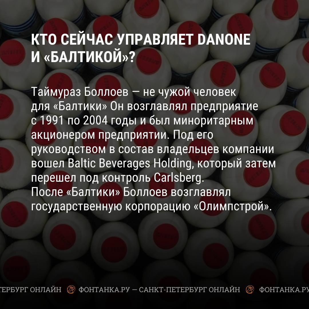Иностранные владельцы больше не контролируют российские активы «Балтики» и Danone. Их суммарный оборот составляет около 200 миллиардов рублей. Теперь бизнесом будут управлять Таймураз Боллоев и Якуб Закриев.