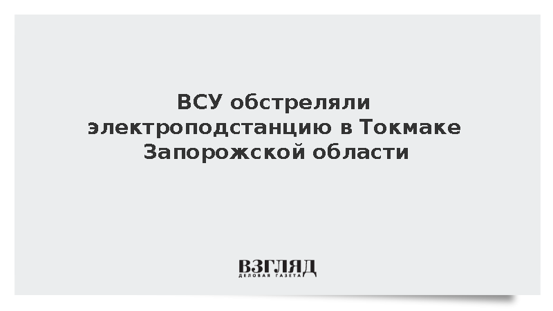 Энергетическая инфраструктура города Токмак Запорожской области подверглась обстрелу со стороны Вооруженных сил Украины, передает ТАСС.