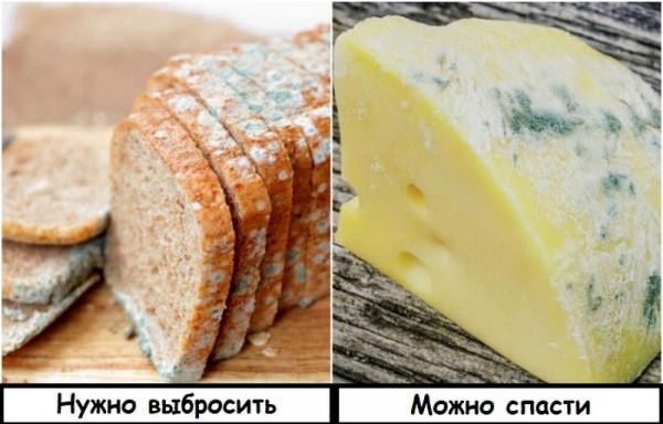 Читатели, которые в преддверии Нового Года смотрели фильм "Ёлки-2", наверняка помнят, как мама Оли выбросила все продукты, которые купил в магазине ее несостоявшийся зять из Франции. Мол, они были испорчены из-за плесени. Знала бы женщина, в какую кругленькую сумму обошлись Франсуа эти деликатесы, она бы приняла другое решение. Эта ситуация - наглядное подтверждение того, что не всегда еда, на которой присутствует плесень, плохая. Гриб воздействует на продукты по-разному, и иногда можно отрезать испорченный кусочек, чтобы спасти все остальное. Например, так часто поступают с сыром, после чего упаковывают его в пленку или пергаментную бумагу. Можно спасти и овощи - болгарский перец, капусту в кочане. А вот хлеб, йогурт, огурцы, персики лучше выбросить целиком - в них плесень бьет на поражение.novate.ru