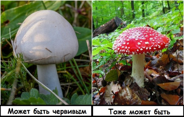 Информация для любителей собирать грибы. Некоторые люди считают, что если грибы червивые, значит, они автоматически не могут быть ядовитыми. Однако это неправда. То, что опасно для здоровья человека, совсем не обязательно будет ядовито для других существ, и наоборот. Например, мы обожаем лисички, а черви стараются держатся от них подальше, так как в составе грибов есть вещество, токсичное для личинок. А мухи часто откладывают яйца в мухоморы, но все мы знаем, что эти грибы ядовитые. В общем, смысл понятен.
