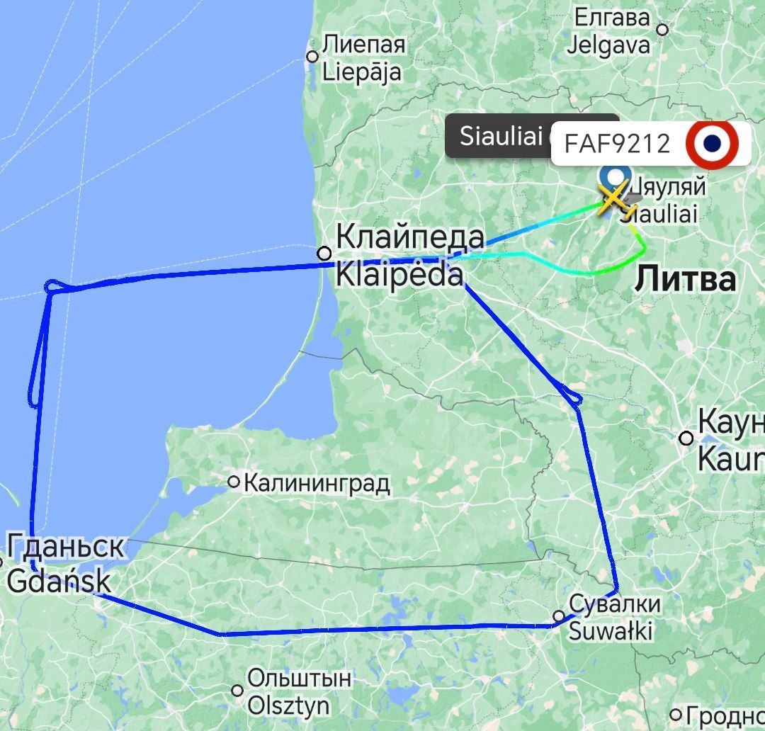Разведывательные самолёты ВВС Франции практически ежедневно поднимаются с авиабазы Шяуляй в Литве, где размещены отдельные силы Миссии воздушной полиции НАТО в странах Балтии, и совершают провокационные полёты по периметру Калининградской области.