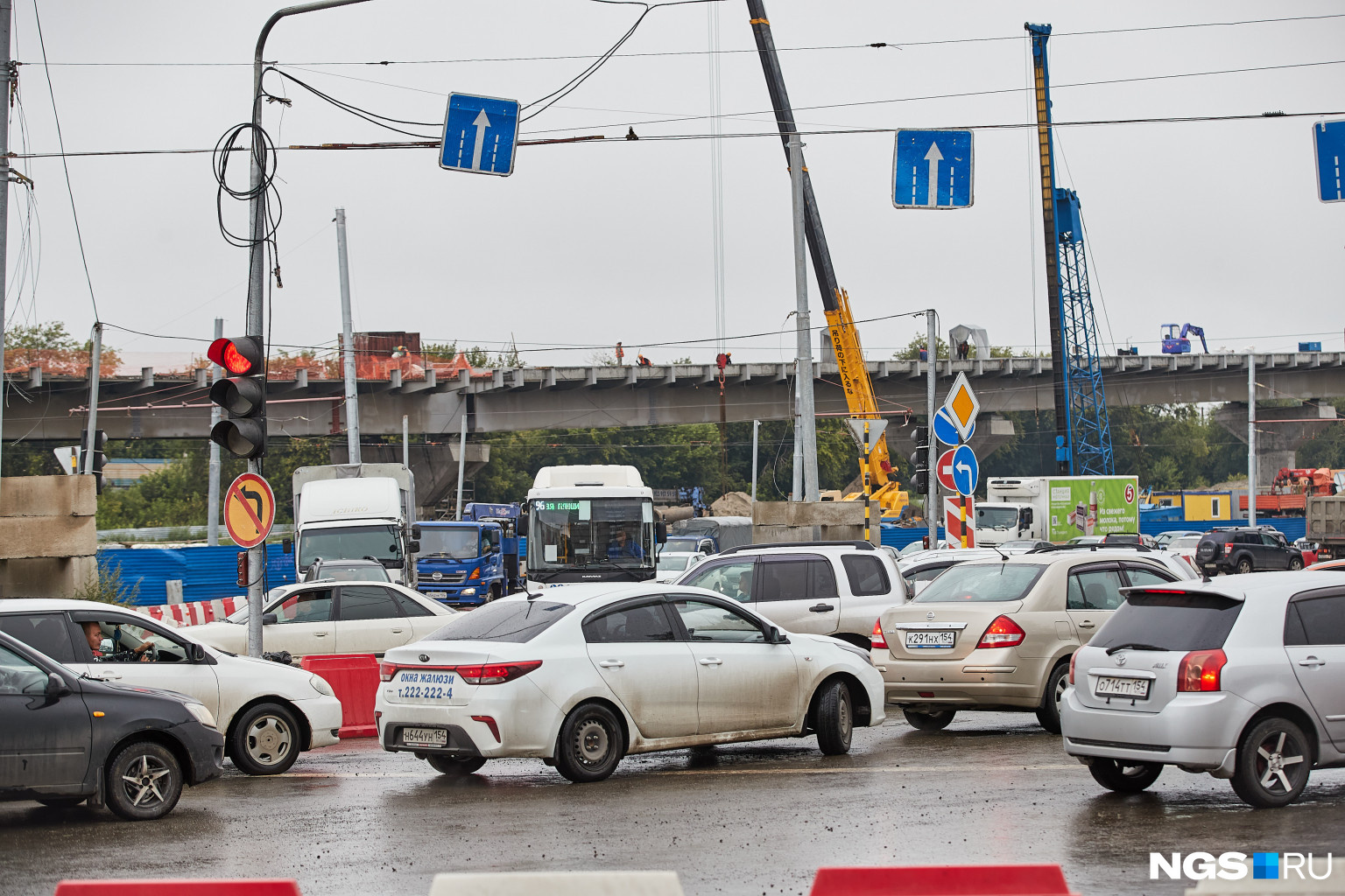Фотокорреспондент НГС Александр Ощепков запечатлел, что сегодня утром происходит на знаменитой развязке, где идет строительство четвертого моста.