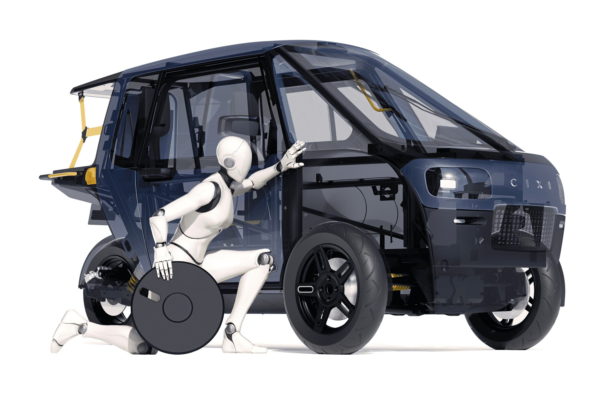 Спереди у Cixi Vigoz два колеса, сзади одно, причём заднее колесо является ведущим. Шины имеют мотоциклетный профиль, так как Vigoz благодаря хитрой кинематике передней подвески может крениться внутрь поворота и проходить его на довольно высокой скорости. За торможение отвечают мощные дисковые тормоза. Характеристики электромотора не раскрыты, известно только, что расчетная максимальная скорость транспортного средства составляет 120 км/ч. Ёмкость размещённой под полом батареи — 22 кВт·ч, её полная зарядка от обычной бытовой розетки займёт шесть часов.