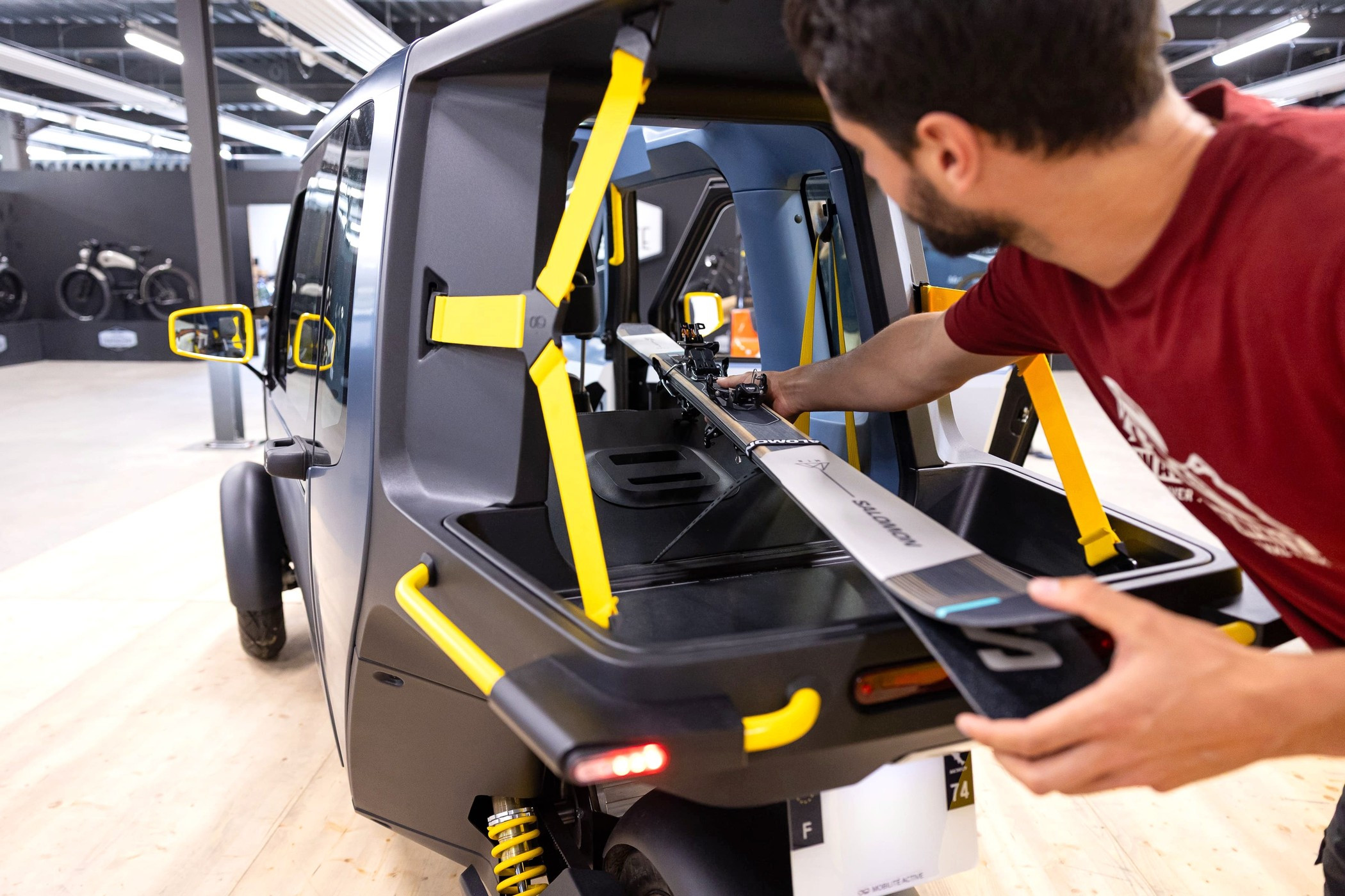 Cixi Vigoz имеет полностью закрытый кузов каркасно-панельного типа с распашными боковыми дверями, открывающими доступ в двухместный салон. Единственный пассажир сидит за водителем, а если пассажира нет, то можно сложить спинку его кресла и использовать свободное пространство для перевоза крупногабаритных вещей — для их погрузки есть небольшая багажная дверца на корме. Фиксировать торчащий из салона груз придётся ремешками. На крыше тоже можно перевезти габаритный груз — для этого предусмотрены крепления на присосках.