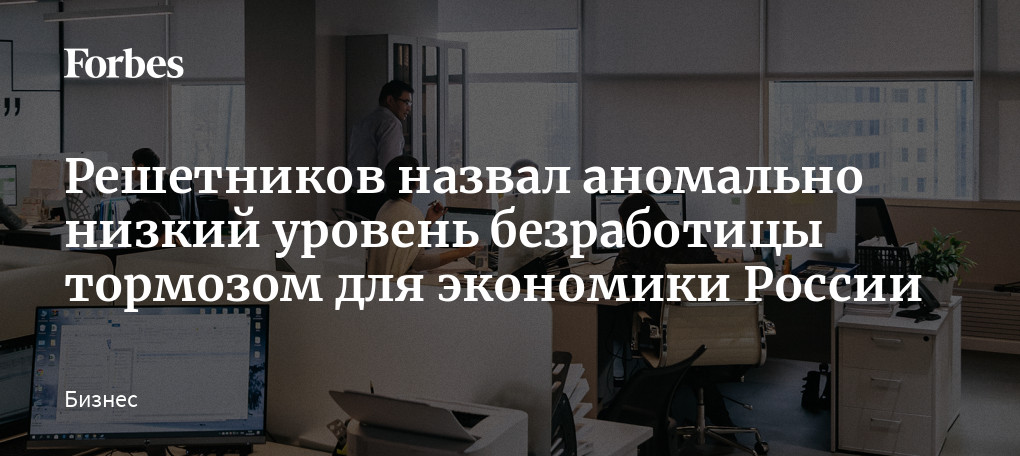 Глава Минэкономразвития назвал аномально низкий уровень безработицы тормозом для российской экономики. В июле безработица в России обновила минимум за период наблюдений показателя с 1991 года, сократившись до 3,0%. Решетников обратил внимание на большой отток населения из России в последние полтора года и призвал более активно работать с привлечением в страну мигрантов