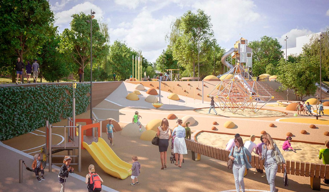 "Примечательно и то, что с верхнего уровня площадки будет открываться живописный вид на пойму реки Шмелевки, что позволит использовать ее и как видовую зону", – отметил чиновник. По его словам, общая площадь игровой зоны составит 2660 квадратных метров.