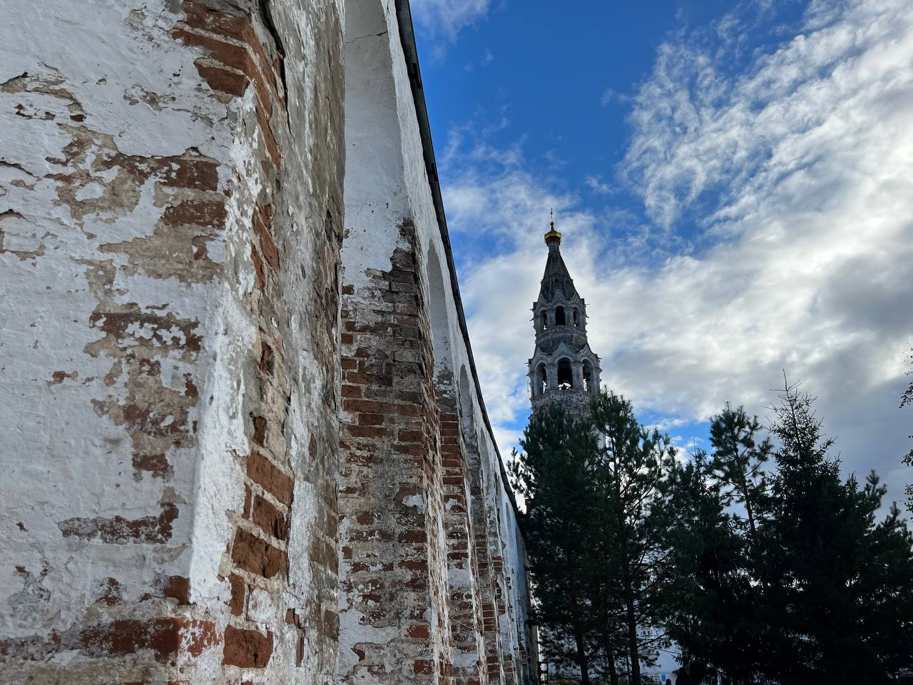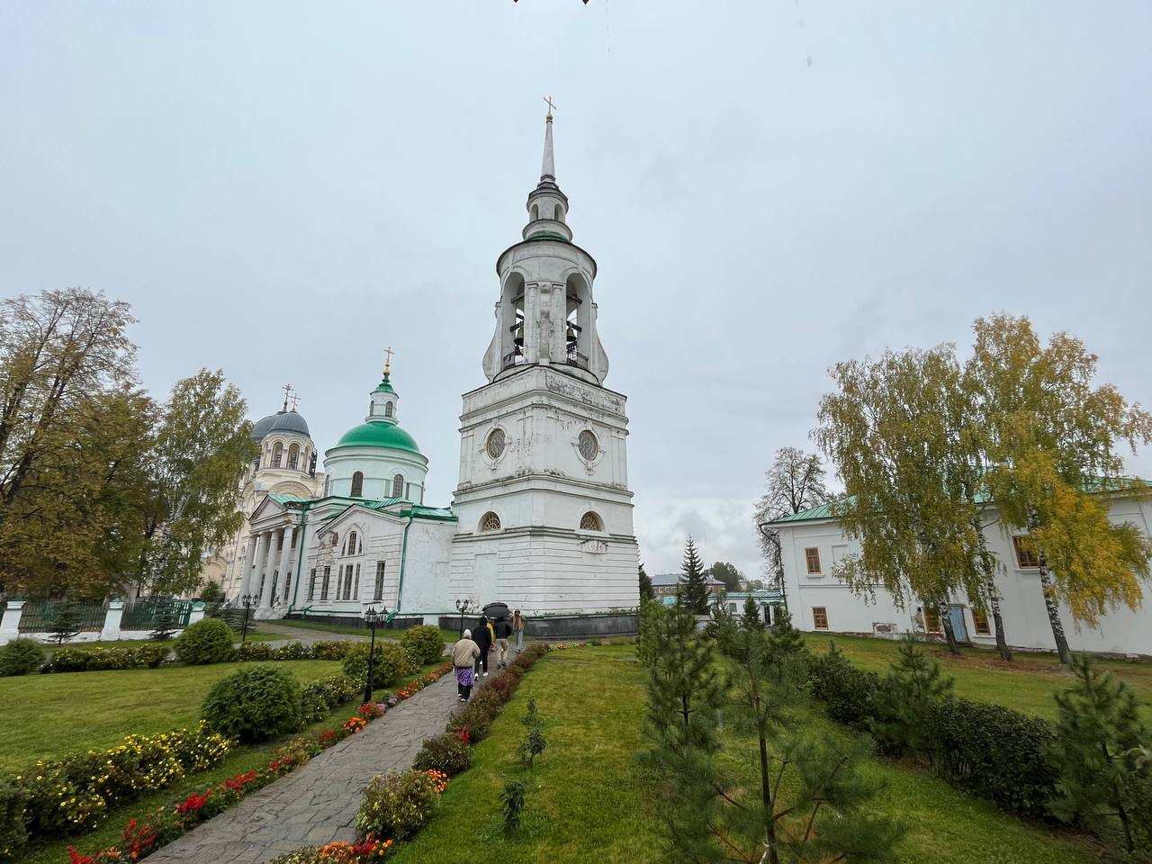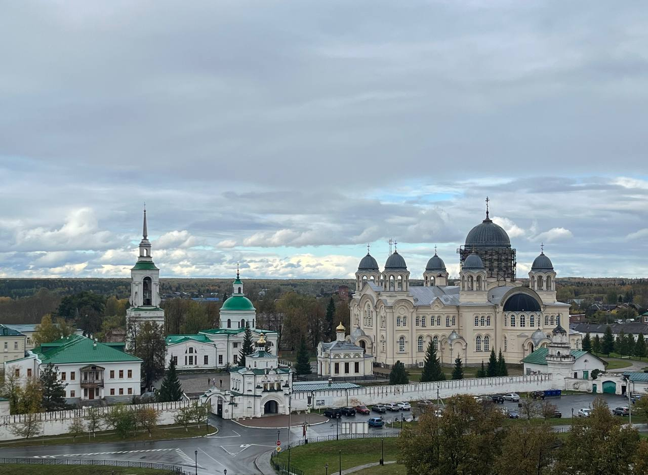 Большой плюс достопримечательностей Верхотурья в том, что все туристические точки находятся как на ладони, не только если смотреть на город со смотровых площадок. Пара минут пешком, и мы уже на территории Свято-Николаевского мужского монастыря, который выглядит как еще одна крепость из-за ограды с башнями XIX века. Монастырь был основан почти одновременно с городом, в 1604 году, но широко известен стал только столетие спустя, после обретения мощей святого Симеона Верхотурского. В советское время монастырские здания использовались как колония для несовершеннолетних, но сейчас это вновь центр притяжения паломников. Он поражает своим величием: его архитектура сочетает в себе элементы русского византийского стиля, классицизма и древнерусской архитектуры.