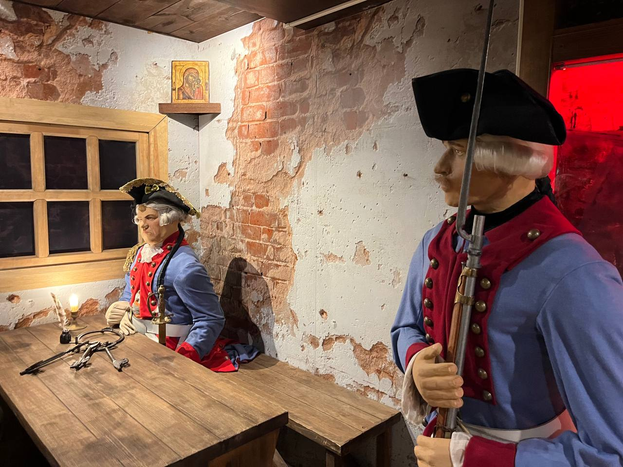 Вдоволь налюбовавшись городом, можно спускаться — и прямиком в руки опытных экскурсоводов Верхотурского историко-архитектурного музея. Они расскажут, что город с более чем 400-летней историей раньше являлся важным торговым и административным центром Урала, а его золотое время пришлось на XVII век. Именно здесь проходил Сибирский тракт, связывавший европейскую часть России с Сибирью, и первая сухопутная дорога через Урал — Бабиновская дорога, которая также сыграла важную роль в освоении Сибири. В музее можно не только посмотреть на быт верхотурцев, промыслы и ремесла, интерьеры торговых заведений города, например на самый первый кабак в Сибири, но и самому пройти по Бабиновской дороге. Еще одна из интересных и поучительных экспозиций музея — Верхотурский тюремный острог XVIII века. Здесь и камеры с пыточными, и подлинные ручные кандалы, и револьвер образца 1872 года. Выходим на улицу и вдыхаем свежий воздух свободы, гуляем по территории кремля среди елей и любуемся кирпичными стенами старой крепости.
