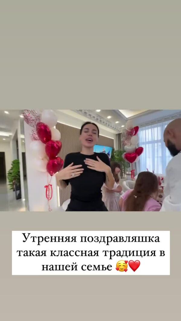 Утром 27 апреля Оксана вышла в Сеть и рассказала, что их не пускают на первый этаж, там идут последние приготовления к торжеству. В их семье существует традиция, что каждого именинника с утра ждет сюрприз.
