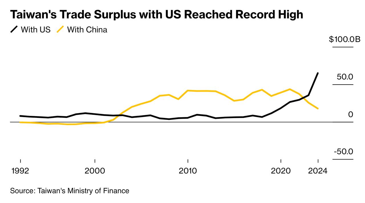 На острове же милитаристская повестка вызывает ожесточённые драки в парламенте. Согласовать повышение военных трат будет крайне сложно. А для Трампа это рычаг давления - в случае нежелания Тайваня тратить больше на свою безопасность США могут ввести тарифы и сделать очень больно чиповой индустрии острова. Тем более торговый профицит Тайваня с США ставит всё новые рекорды.