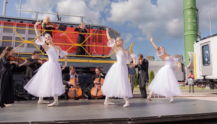 Всё действо сопровождалось паровозными гудками и музыкой, которая долетала со стороны соседних экспозиций, где, к слову, был представлен железнодорожный транспорт настоящего или, скорее, ближайшего будущего. Например, прошла торжественная презентация электропоезда ЭП2ДМ и поезда метро "Балтиец". Последний создавался в соответствии с техническим заданием метрополитена Санкт-Петербурга специалистами компании "ТМХ Инжиниринг".