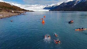 На днях в аргентинском Эль-Калафате прошел этап Кубка мира по зимнему плаванию, на озере Архентино температура держалась около пяти градусов. Российская команда приехала на южноамериканский континент в составе пяти человек, причем выступали спортсмены под национальным флагом. Конкуренцию нашим пловцам составили финны, датчане, испанцы, немцы, французы и представители других стран. Соревнования проходили на дистанциях от 25 до 500 метров.