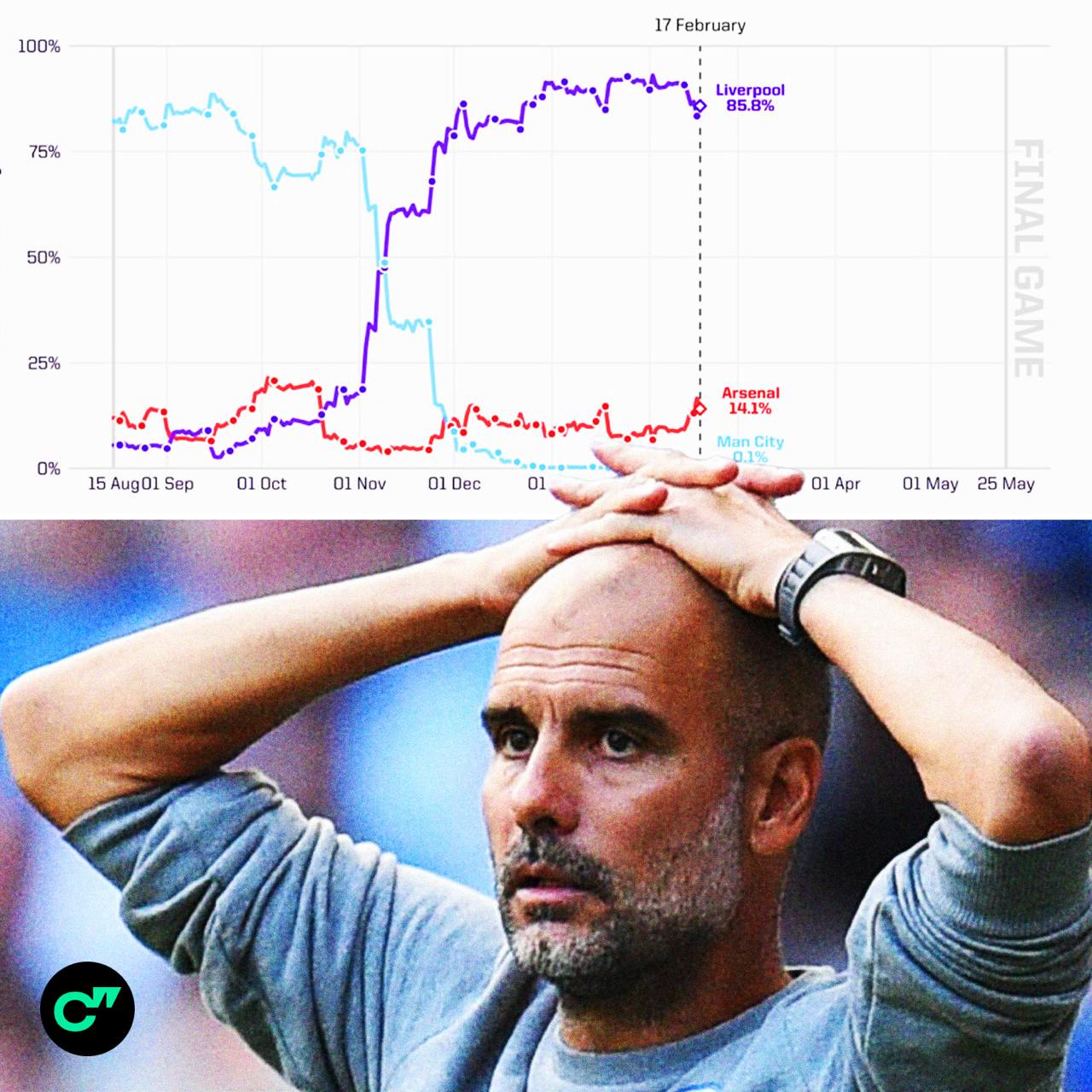 Суперкомпьютер Opta дал 0,1% на победу «Ман Сити» в АПЛ.