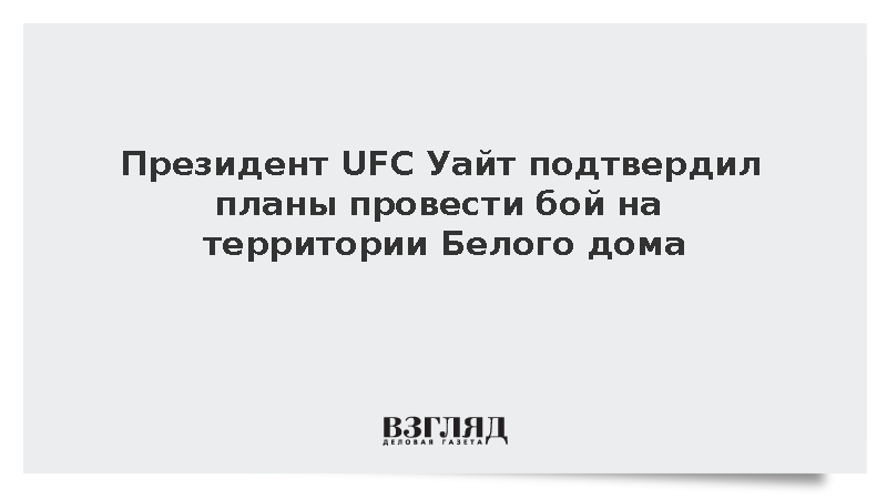Президент UFC Дэйна Уайт подтвердил, что поединок турнира UFC пройдет на территории Белого дома 4 июля 2026 года, передает ТАСС.