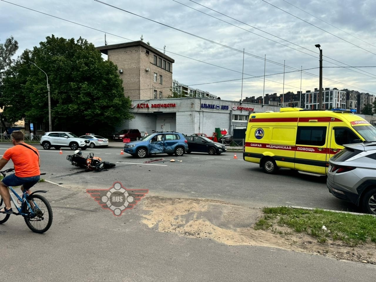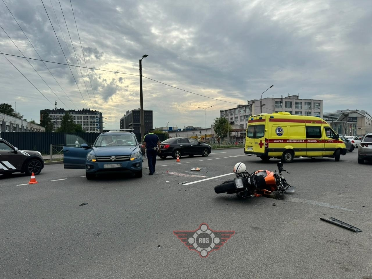 В 17:10 на Полюстровском проспекте, возле дома 74, столкнулись мотоцикл KTM 1190 Adventure и легковой автомобиль Volkswagen. Водитель машины поворачивал налево, а байкер ехал прямо слева от него, сообщили «Фонтанке» в пресс-службе ГУ МВД по Петербургу и Ленобласти.