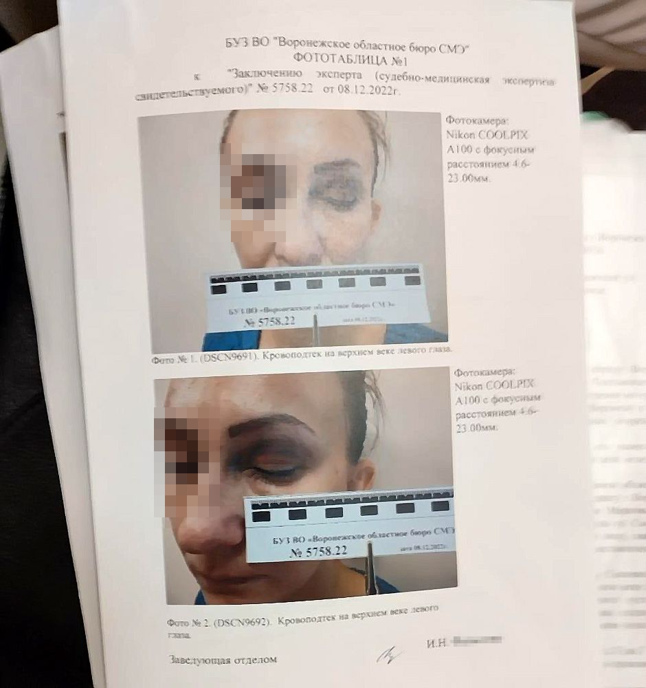 По словам Светланы, кроме рокового утра 7 декабря 2022-го ей известно о двух серьёзных избиениях. Одно из них — в августе того же года: лицо Вики превратилось в сплошной синяк (фото есть). Тогда дошло до полиции, ей предлагали: «Пиши заявление», Вика опять простила.