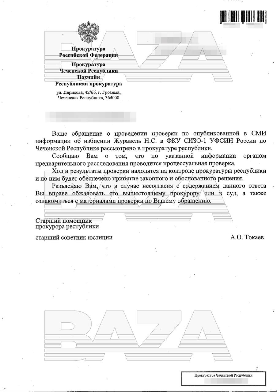 Полиция начала проверку после избиения Никиты Журавеля сыном Рамзана Кадырова, Адамом Кадыровым в грозненском СИЗО-1. Это следует из ответов прокуратуры и Следственного комитета, оказавшихся в распоряжении «Базы».