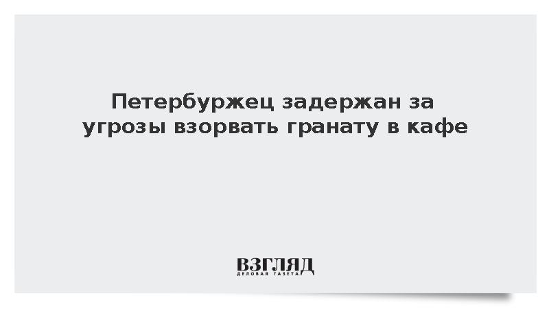 Во Фрунзенском районе Петербурга полиция задержала 43-летнего мужчину, угрожавшего взорвать гранату в кафе. Подозреваемый заявил, что держит в руке боевую гранату с сорванной чекой.