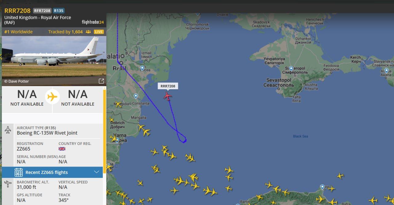 π«π²ΠΡΠΈΡΠ°Π½ΡΠΊΠΈΠΉ ΡΠ°ΠΌΠΎΠ»Π΅Ρ-ΡΠ°Π·Π²Π΅Π΄ΡΠΈΠΊ RC-135W Rivet Joint Π·Π°ΠΌΠ΅ΡΠ΅Π½ Ρ Π±Π΅ΡΠ΅Π³ΠΎΠ² Π ΡΠΌΡΠ½ΠΈΠΈ
