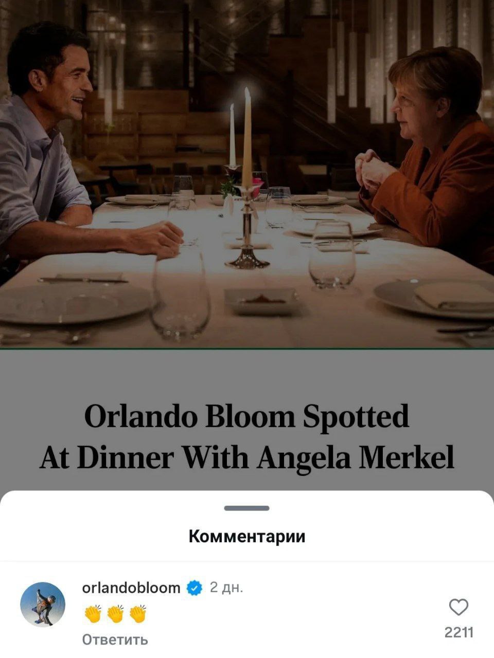 Внимание актёра привлекла ИИ-картинка, на которой он изображён на свидании с бывшим канцлером Германии Ангелой Меркель. На «новость» звезда «Пиратов карибского моря» отреагировал эмодзи в виде аплодисментов.