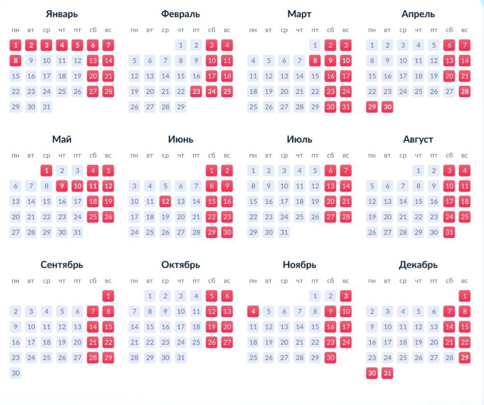 В 2024 году будет 248 рабочих дней и 118 — выходных и праздничных.