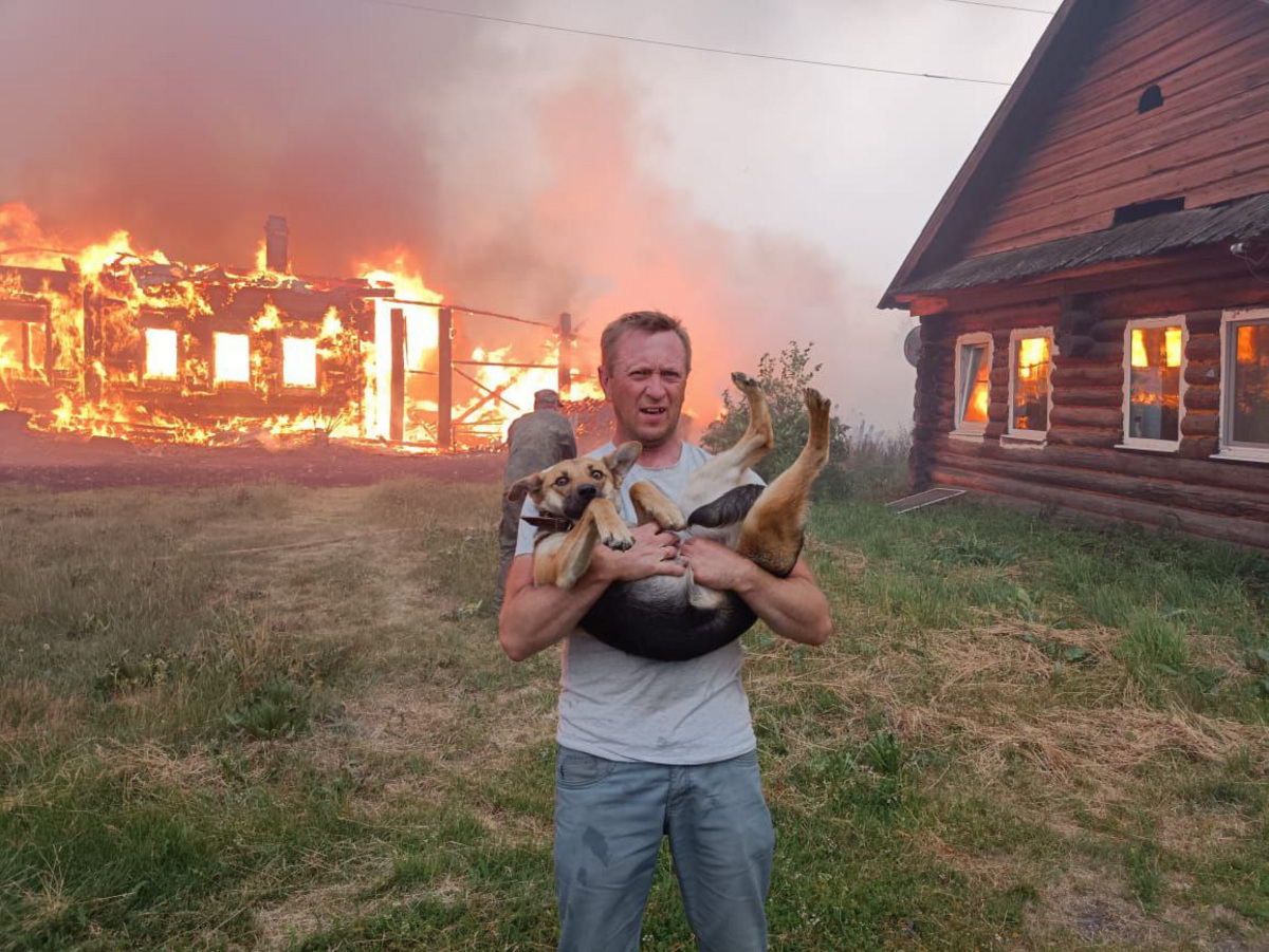 Жители горящего свердловского села спасают из пожара питомцев. Фото