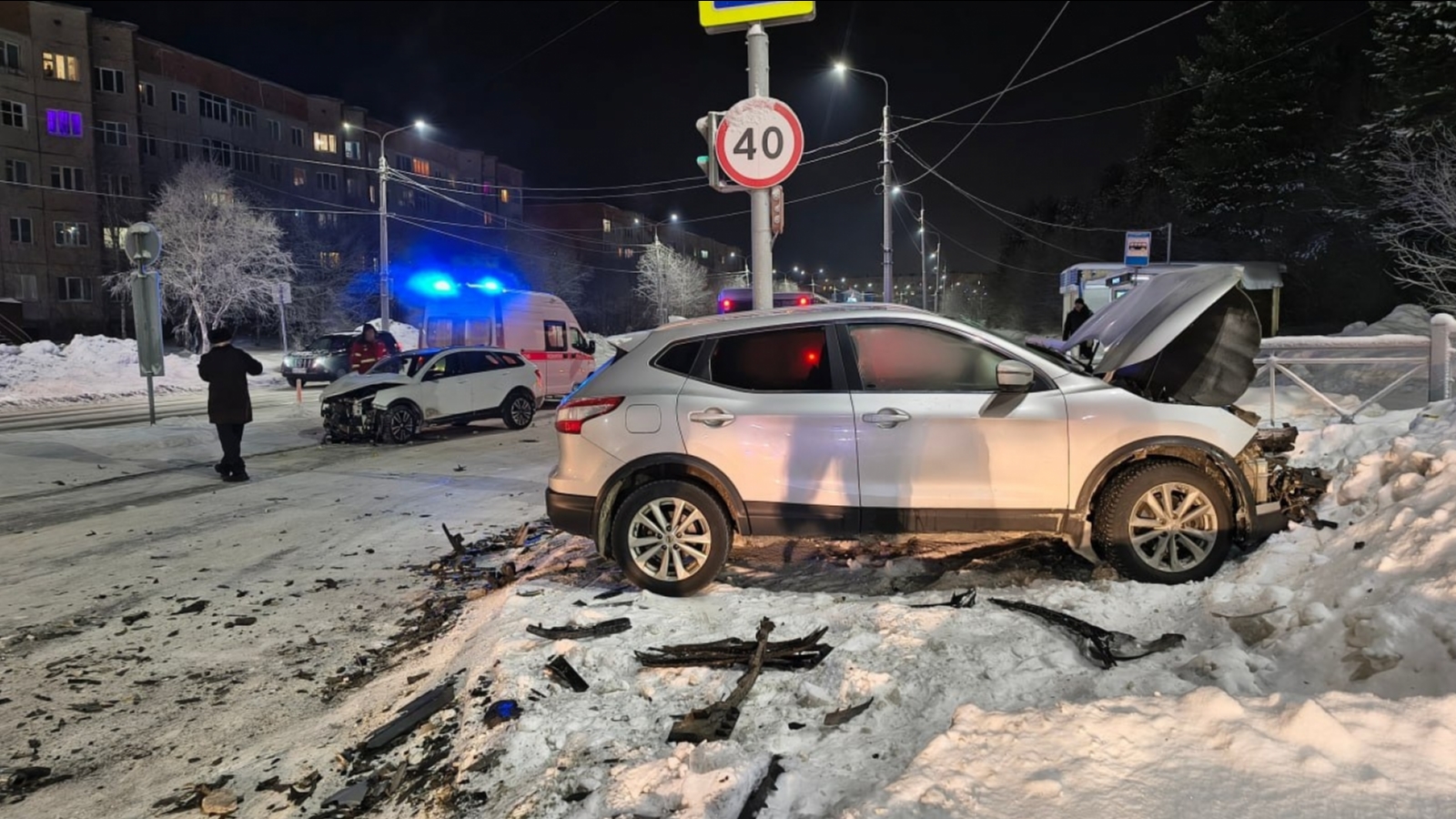 В Апатитах на перекрестке улицы Воинов-Интернационалистов и проспекта Сидоренко произошла лобовая авария.