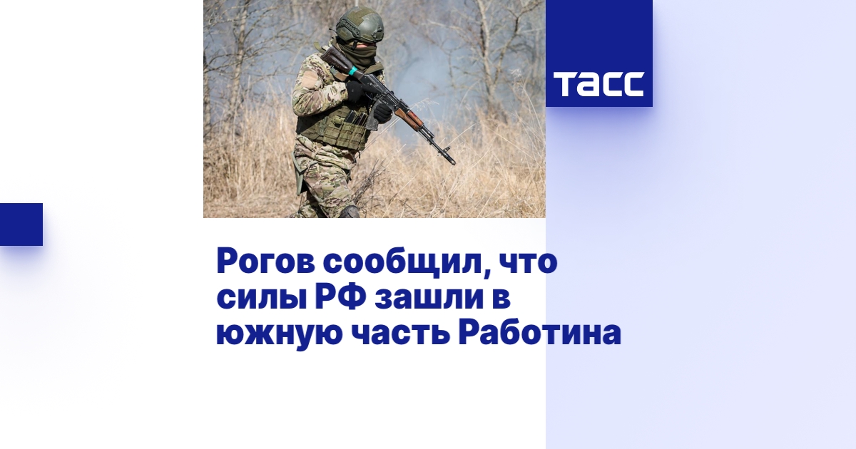 МЕЛИТОПОЛЬ, 25 февраля. /ТАСС/. Российские силы зашли в южную часть села Работино Запорожской области, населенный пункт находится под их огневым контролем. Об этом сообщил ТАСС председатель движения "Мы вместе с Россией" Владимир Рогов.