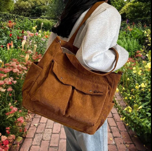 - Сумки: Вельветовая сумка-тоут отлично дополняет повседневный лук, а маленькая сумочка на плечо — идеальна для вечера.