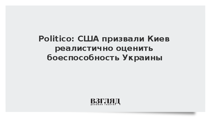 Газета Politico, ссылаясь на американского чиновника, сообщает, что власти США призвали украинское руководство более реалистично оценивать возможности своей армии, передает РИА «Новости».