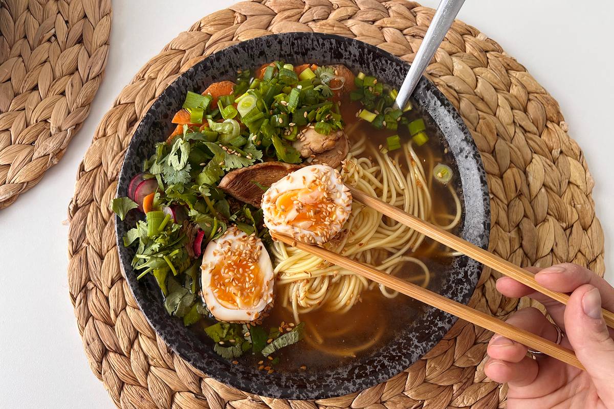 Рамен — это японский суп с лапшой и разными начинками. Я люблю его за сытность.