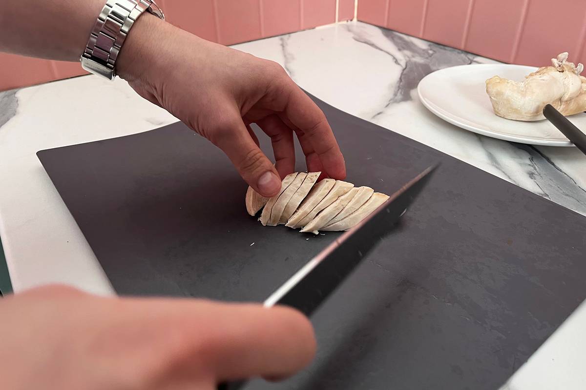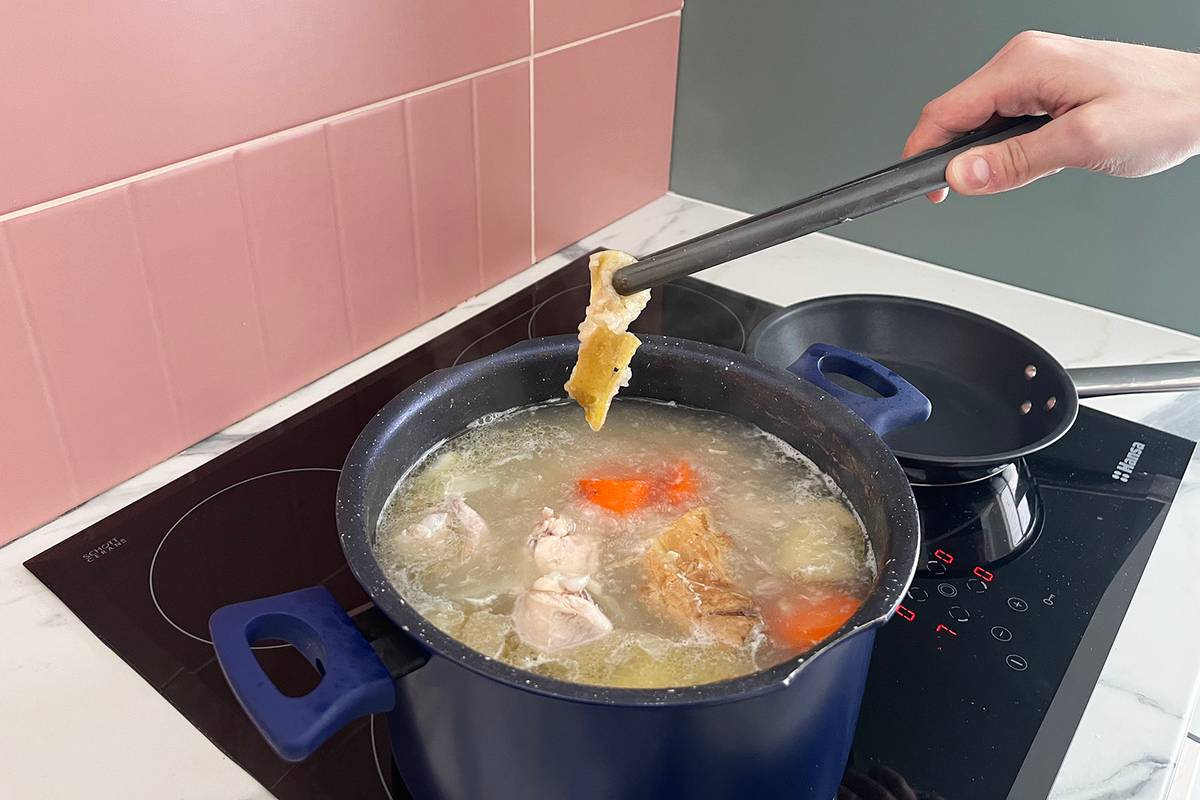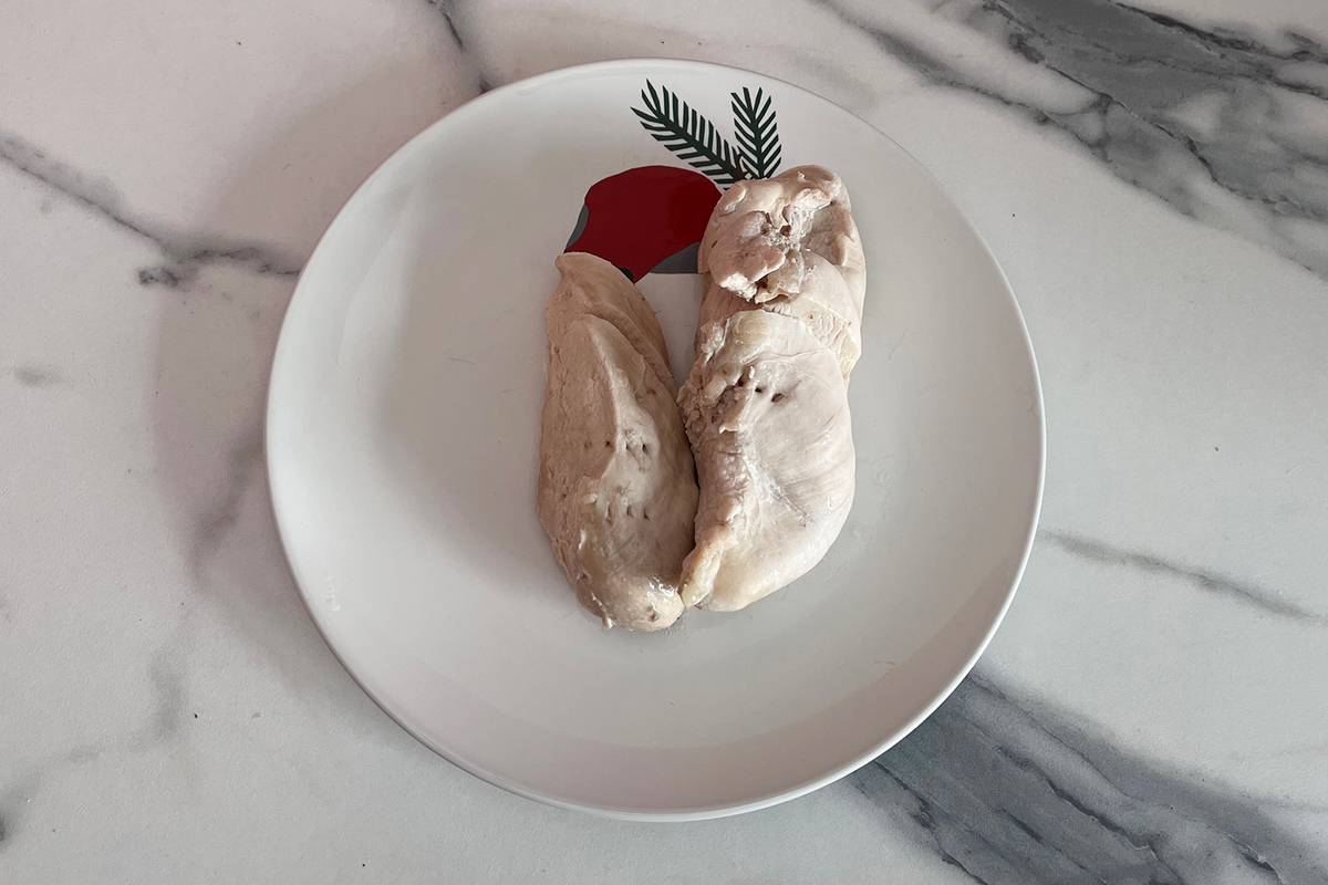 К этому времени бульон уже будет кипеть. Опустите грудку в суп на 20—25 минут. После этого вытащите и положите в тарелку, пусть остывает.