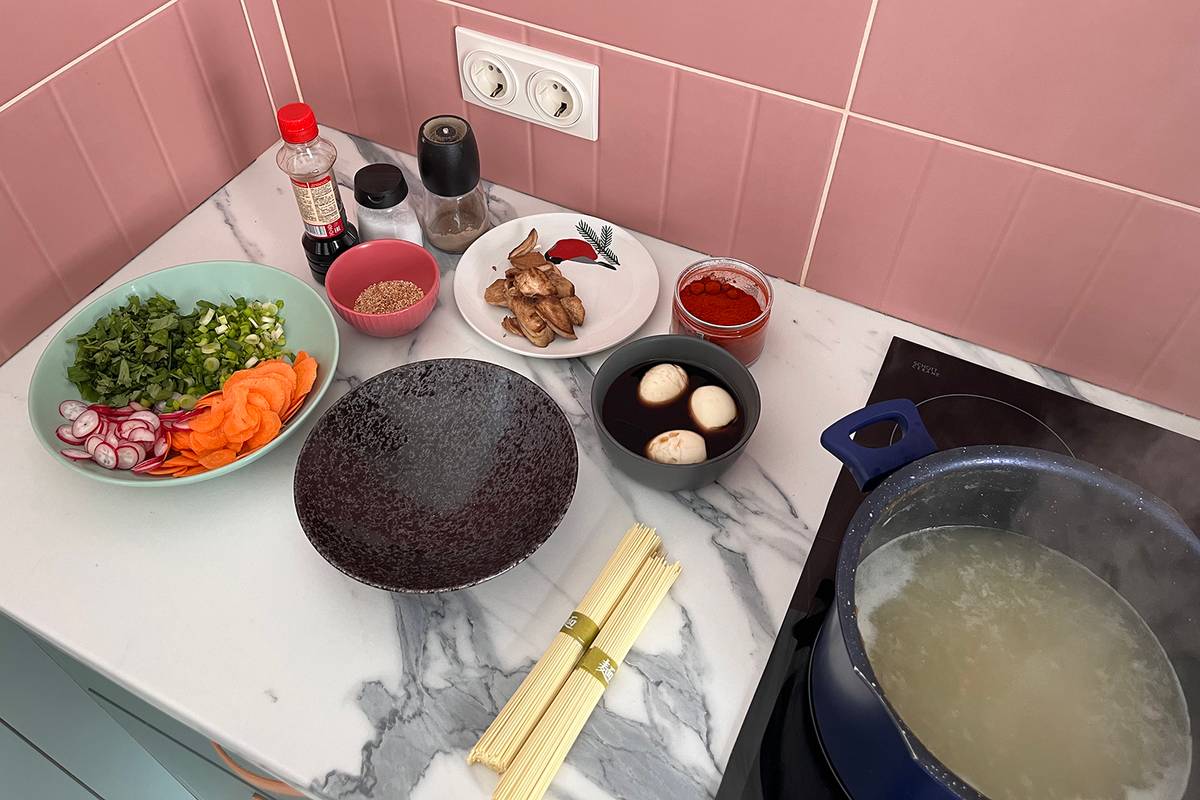 Но пару лет назад я приготовил рамен по советам из интернета, и мне понравилось. Мой рецепт — это комбинация роликов на «Ютубе» и личного опыта. В нем не так много японских элементов, зато все ингредиенты можно найти в ближайшем магазине.
