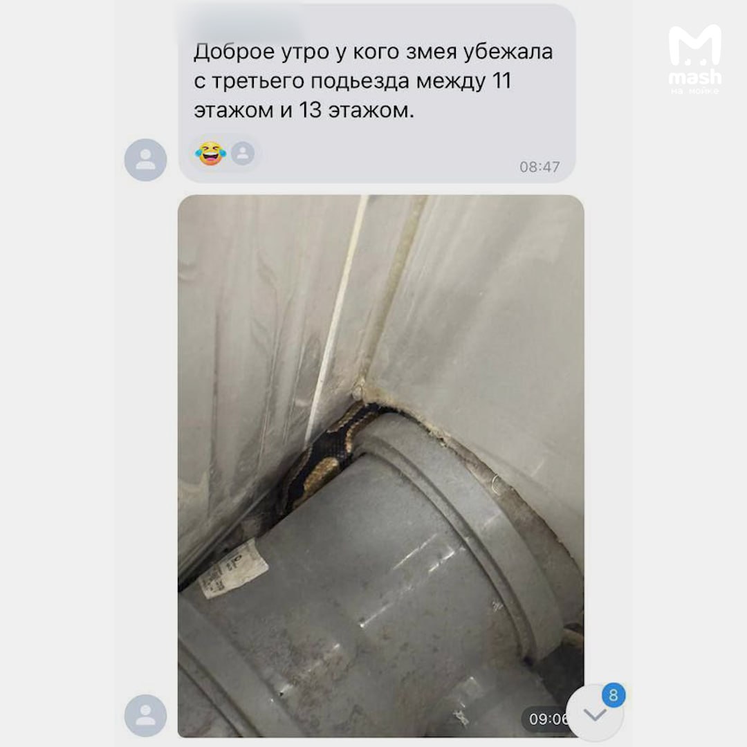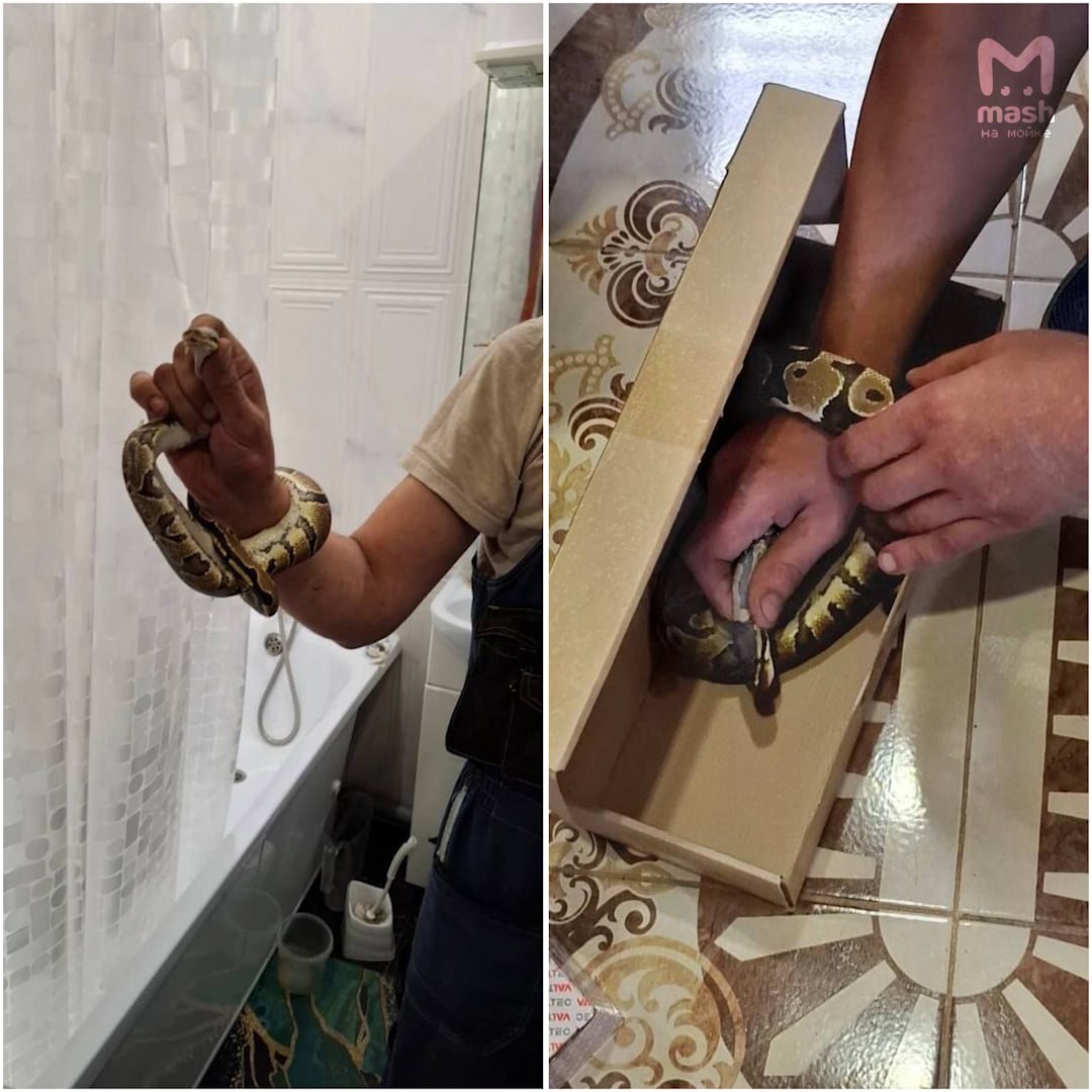 Змею заметили местные жители — экзотическую находку быстро словили работники УК и поместили в коробку. Однако питон смылся и оттуда — его всё ещё не нашли.