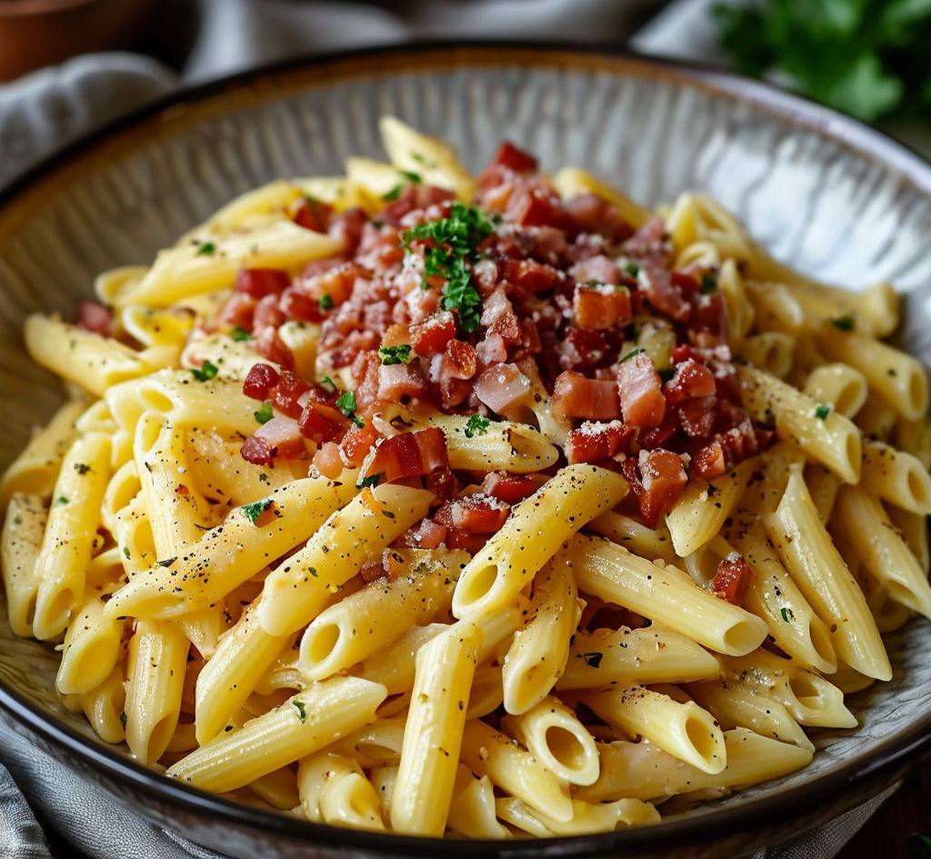 Паста с беконом в сливочном соусе