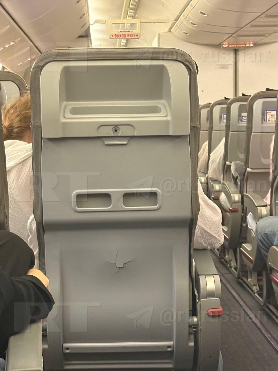 По словам женщины, сначала всех пассажиров посадили в самолёт и оставили на 1,5 часа. Затем их высадили и отправили в аэропорт. Состояние борта, как говорит собеседница, очень плачевное (на фото).