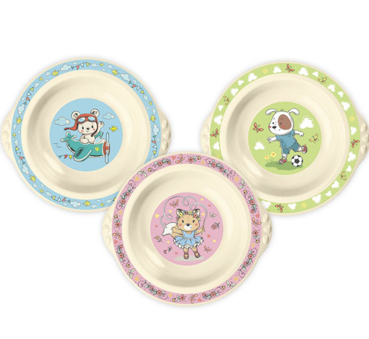Маленькому ребенку для кормления точно пригодится безопасная небьющаяся посуда. Тарелки для малышей специально делают небольшими, с яркими рисунками, которые появляются, как дети съедают свою порцию. А ложки и вилки для самых маленьких не имеют острых краев, и их удобно держать в детской ручке.