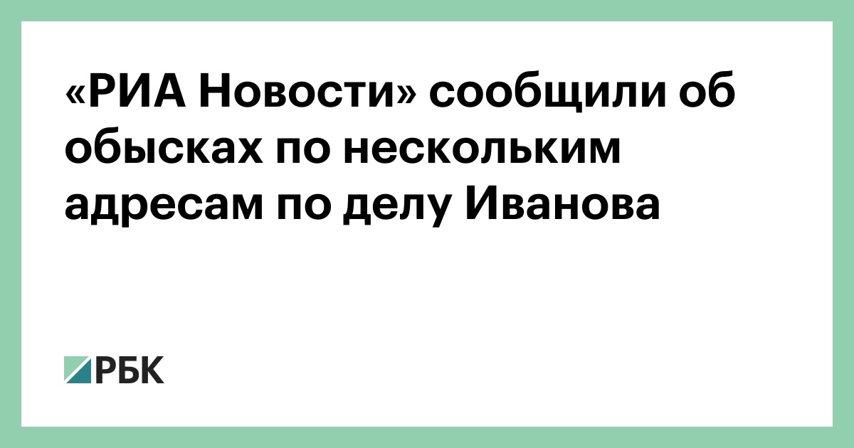«По нескольким адресам, которые связаны с делом Иванова, продолжаются обыски», — сказал собеседник агентства, не уточнив мест проведения обысков.