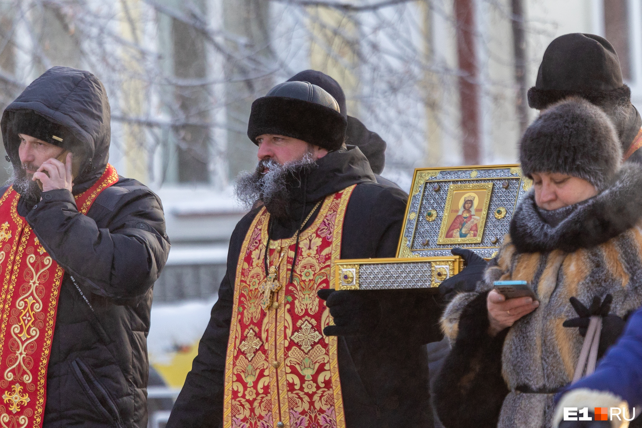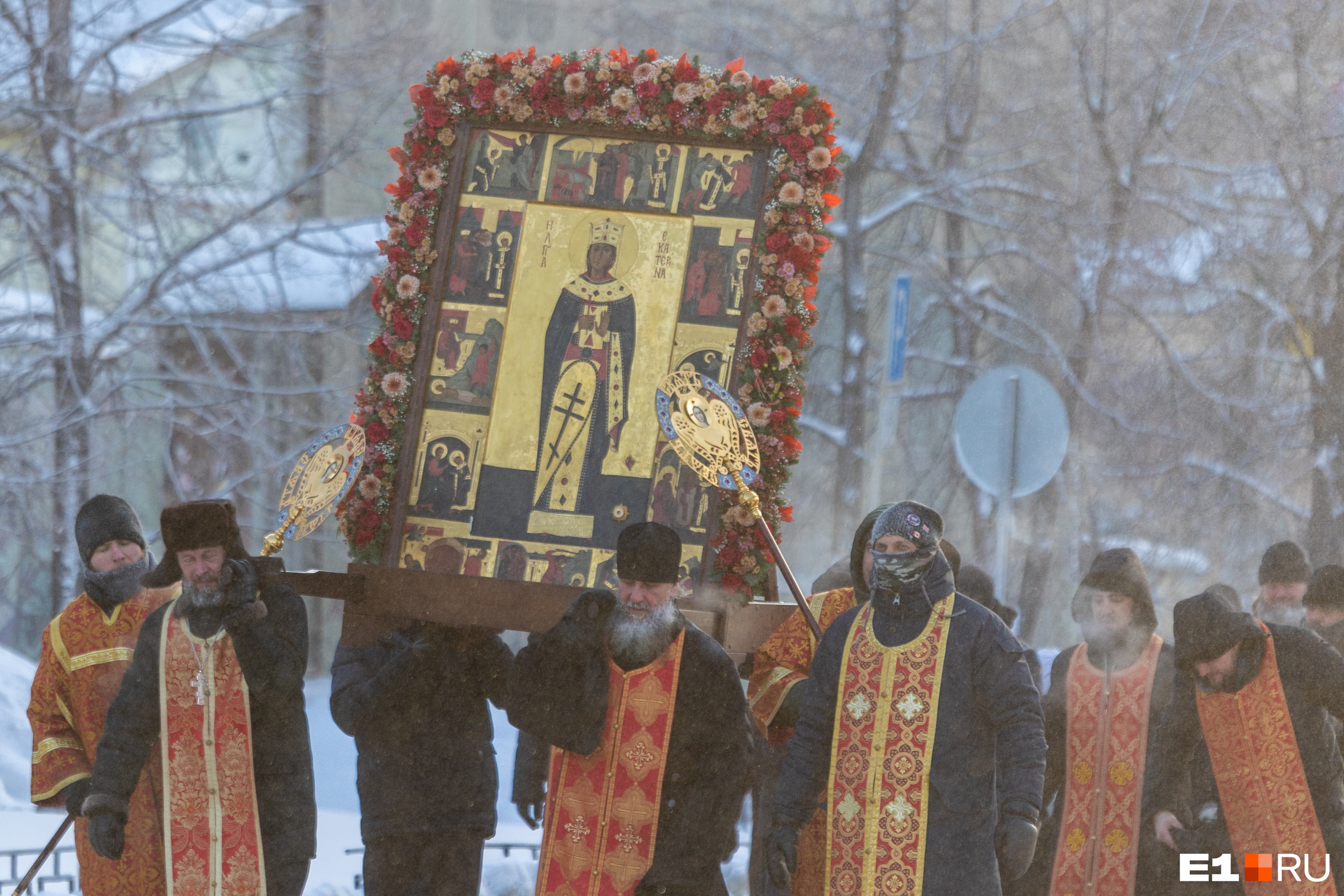 Святыню передали Екатеринбургской епархии от лица общины православных верующих Крыма. После богослужения мощи пронесли до часовни святой Екатерины. В крестном ходе, несмотря на мороз, приняли участие сотни верующих.