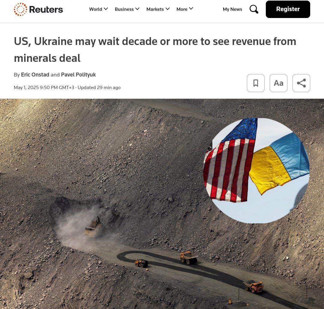 Π‘ΠΎΠ³Π»Π°ΡΠ΅Π½ΠΈΠ΅ ΠΌΠ΅ΠΆΠ΄Ρ Π‘Π¨Π ΠΈ Π£ΠΊΡΠ°ΠΈΠ½ΠΎΠΉ ΠΎ ΡΠΎΠ²ΠΌΠ΅ΡΡΠ½ΠΎΠΉ ΡΠ°Π±ΠΎΡΠ΅ Π² ΡΡΠ΅ΡΠ΅ ΠΏΠΎΠ»Π΅Π·Π½ΡΡ ΠΈΡΠΊΠΎΠΏΠ°Π΅ΠΌΡΡ Π²ΡΡΠ΄ Π»ΠΈ ΠΏΡΠΈΠ½Π΅ΡΠ΅Ρ ΠΏΠ»ΠΎΠ΄Ρ Π² ΠΎΠ±ΠΎΠ·ΡΠΈΠΌΠΎΠΌ Π±ΡΠ΄ΡΡΠ΅ΠΌ, ΠΏΠΈΡΠ΅Ρ Reuters. ΠΠΎ ΠΌΠ½Π΅Π½ΠΈΡ ΠΎΡΡΠ°ΡΠ»Π΅Π²ΡΡ ΠΊΠΎΠ½ΡΡΠ»ΡΡΠ°Π½ΡΠΎΠ², Π½Π° ΡΠ°Π·ΡΠ°Π±ΠΎΡΠΊΡ ΠΌΠ΅ΡΡΠΎΡΠΎΠΆΠ΄Π΅Π½ΠΈΠΉ ΠΏΠΎΡΡΠ΅Π±ΡΠ΅ΡΡΡ Π½Π΅ ΠΌΠ΅Π½ΡΡΠ΅ 10β20 Π»Π΅Ρ β ΠΈ ΡΡΠΎ ΠΏΡΠΈ ΡΡΠ»ΠΎΠ²ΠΈΠΈ, ΡΡΠΎ Π΄ΠΎΠ±ΡΡΠ° Π²ΠΎΠΎΠ±ΡΠ΅ Π½Π°ΡΠ½Π΅ΡΡΡ.