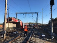— На данный момент продолжаются работы по устранению последствий ДТП, произошедшего на переезде 23 октября. Открыто движение по одному пути. Но характер повреждения подвижного состава и путей таков, что требуется работа серьезной техники. Там, помимо вагонов, сошел с рельсов очень тяжелый трехсекционный локомотив, который просто так с пути не сдвинешь. Восстановительной бригаде ночью снова пришлось закрывать перегон и перекрывать пути. В связи с чем четыре пассажирских поезда выбились из графика, но пассажиров обеспечивали дополнительным питанием, — прокомментировал ситуацию заместитель начальника службы корпоративной коммуникации Забайкальской железной дороги Михаил Бурдуковских.