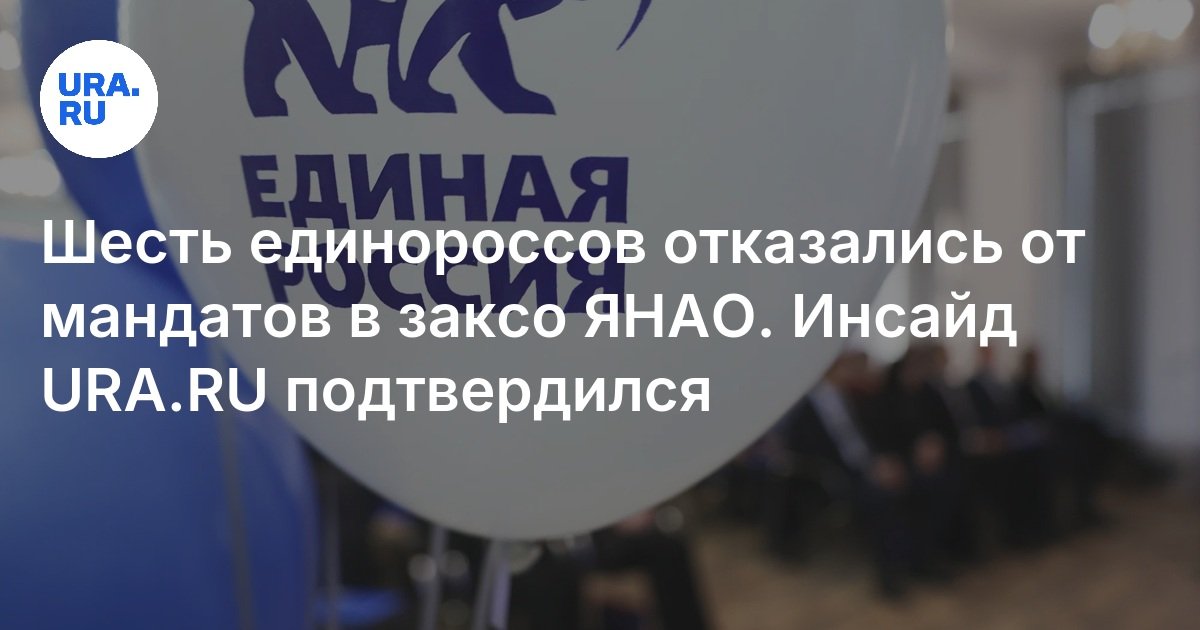 Шесть депутатов, получивших места в восьмом созыве окружного парламента по спискам, отказались от мандатов. Они передали свои места в заксобрании однопартийцам из «Единой России», сообщили источники URA.RU.
