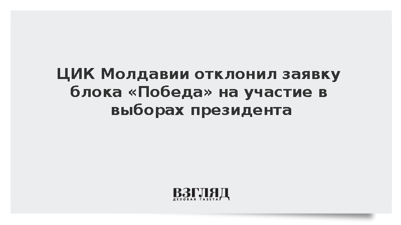 Центральная избирательная комиссия (ЦИК) Молдавии отклонила заявку оппозиционного блока «Победа» об участии в президентских выборах и референдуме по интеграции в Евросоюз.